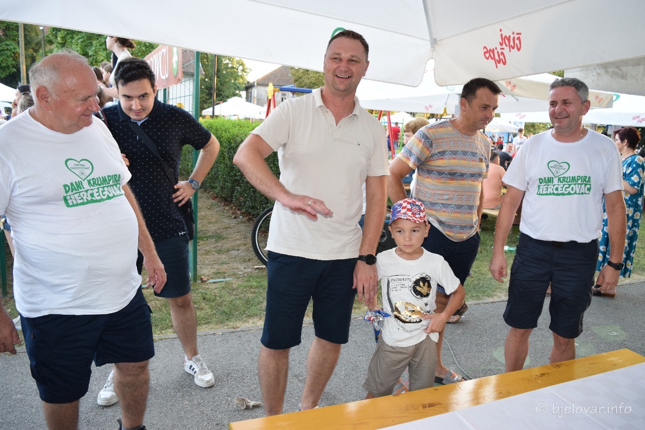 Hercegovac je i ovaj put nadmašio samog sebe. Već etablirana dvodnevna manifestacija, Dani krumpira, poznatija Krumpirijada, u ovo pitomo moslavačko mjesto uvijek privuče mnoštvo ljudi iz svih krajeva Hrvatske. No, ove godine, čini se, da je još većoj i još boljoj fešti pridonijela poznata estradna hrvatska pjevačica i zabavljačica, Maja Šuput. Sinoć je iz svega grla s njom pjevalo na tisuće posjetitelja kojima, očito, nisu smetale niti visoke temperature. Najtopliji dan ovoga ljeta nije omeo niti brojne hercegovčanske udruge da se tijekom petka i subote pokažu u najboljem svjetlu, tako da nitko s Krumpirijade nije otišao niti gladan niti žedan. Na desetke vrsta maštovitih kulinarskih kreacija od krumpira kušali su brojni posjetitelji, a muški dio ekipa pobrinuo se da ima i jela na žlicu. Ne dostajalo nije niti natjecatelja u raznim disciplinama, od bubble nogometa, preko sportske igre s krumpirima do tačkoalke.