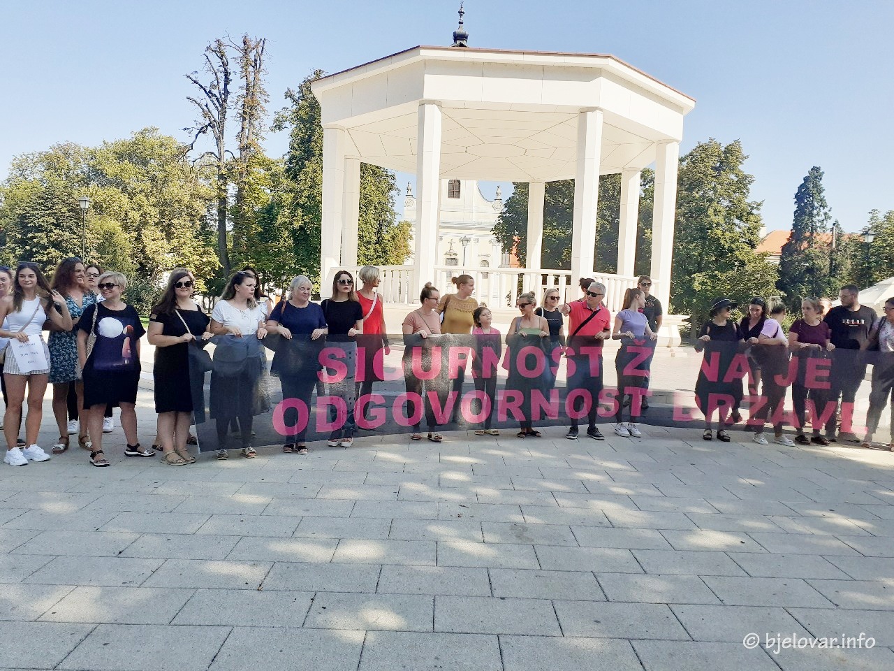Jučer je u 15 hrvatskih gradova održana javna akcija “Sigurnost žena je odgovornost države” kojom je odana počast brutalno ubijenoj Nizami Hećimović. U akciju se uključio i Bjelovar, a na paviljonu su žene i podržavatelji ovog mirnog prosvjeda stali kako bi iskazali svoje nezadovoljstvo zaštitom žena od nasilja. Bjelovarčanka Ines Ban, predsjednica KulPong kluba i inicijatorica ove akcije u gradu nije skrivala zadovoljstvo odazivom sugrađana.