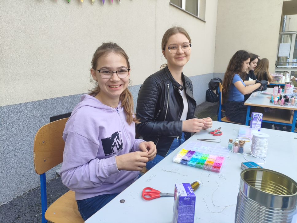Učenica Mia Mišir je s prijateljicom na sajmu izrađivala prstenje od perlica koje su potom prodavale.