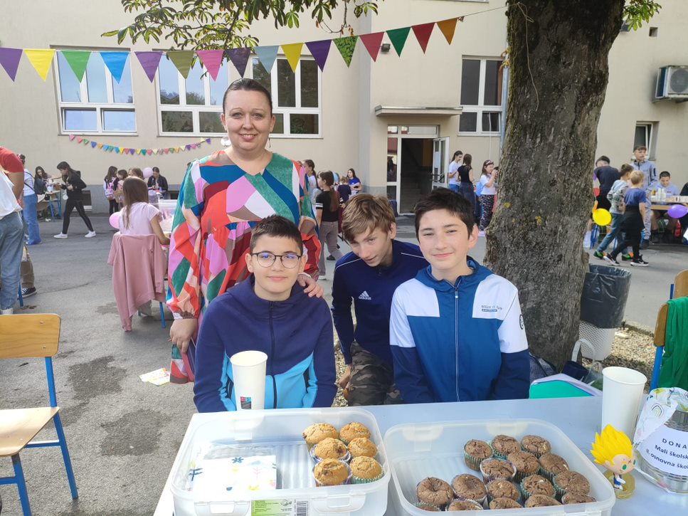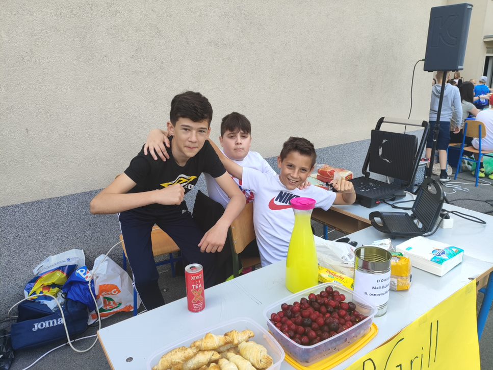 – Naša ekipa danas nudi svježe kiflice, domaće trešnje, Cedevitu te tostirane sendviče s raznim dodacima. Malo su mame pomogle oko kiflica. Za sada prodaja ide dobro, puno djece je navalilo. Kada dođu djeca i iz drugih škola bit će to dobra zarada. Ovo mi je prvi put da sudjelujem i sigurno ćemo naučiti nešto o marketingu i biznisu te će nam to sigurno biti neka stepenica više za budućnost – objašnjava nam Borna Jakić.