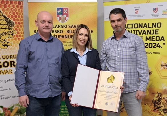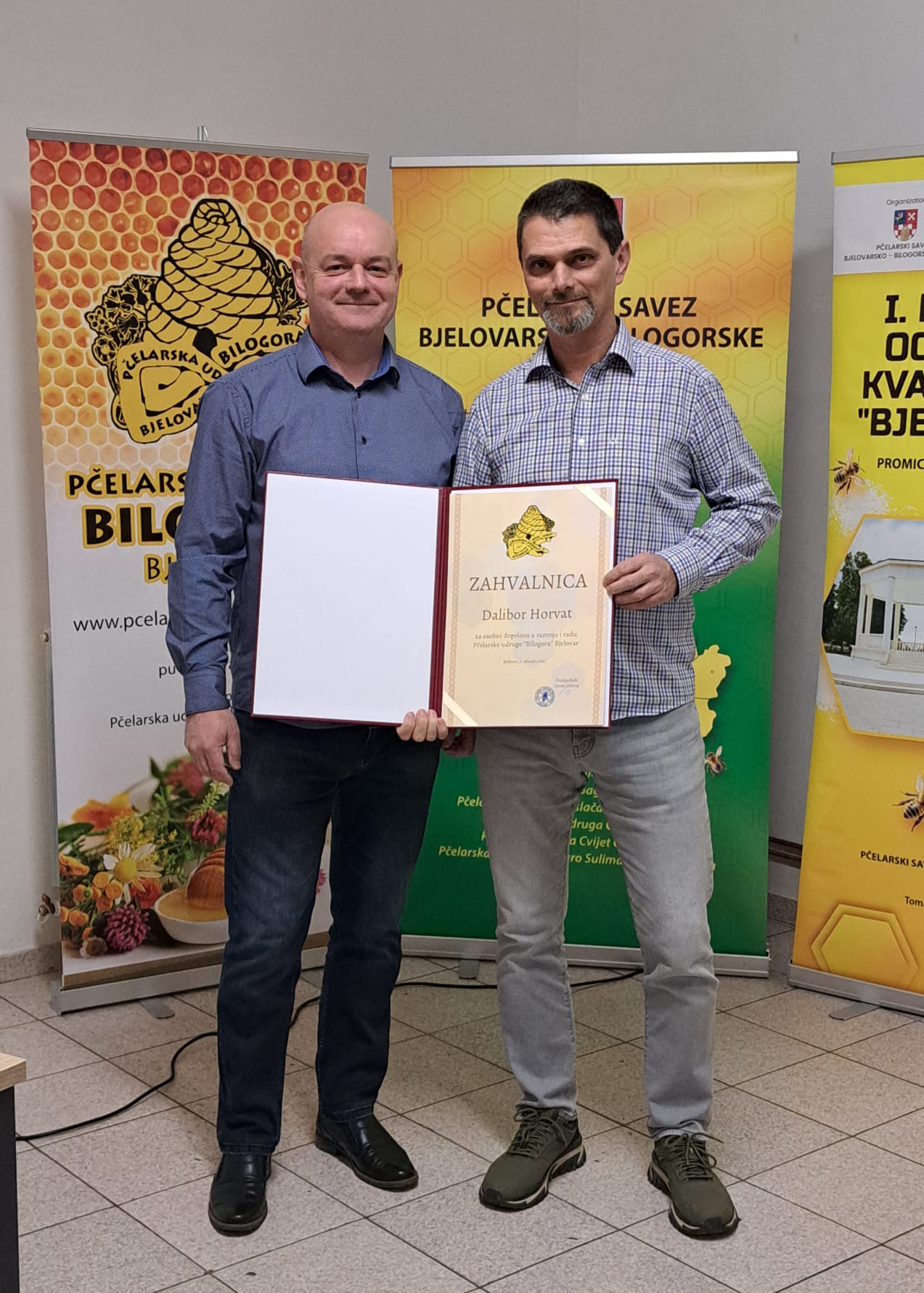 Zahvalnice za potporu u promicanju pčelarstva i radu udruge dodijeljene su Jasminki Kišantal-Zubić i Miroslavu Šmitu, djelatnicima grada Bjelovara.