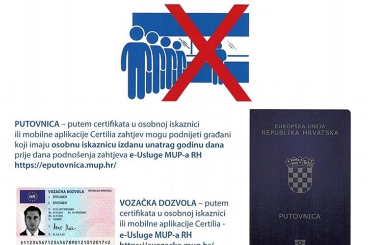 Kako bi se izbjeglo čekanje u redovima, Policijska uprava bjelovarsko-bilogorska obavještava građane da zahtjeve za nove dokumente mogu podnijeti koristeći e-Usluge MUP-a, odnosno putem sustava e-Građani ili mobilne aplikacije Certilia.