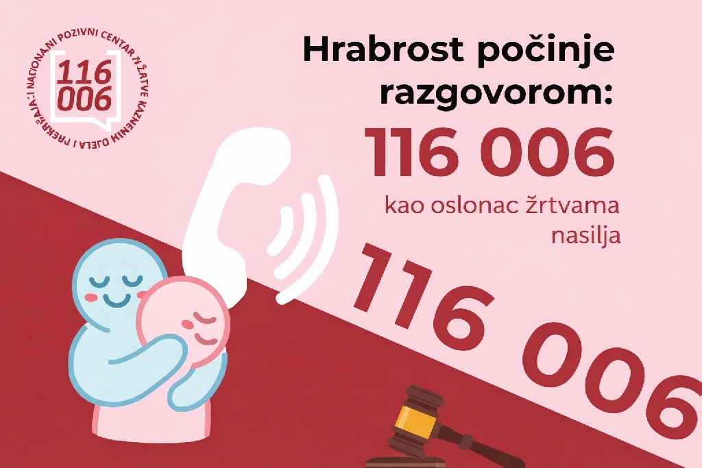 Ako ste žrtva kaznenog djela ili prekršaja, ako niste spremni o tome razgovarati s bliskim osobama ili ne znate kome se obratiti, nazovite 116 006. Linija je anonimna i besplatna te dostupna 24 sata dnevno, 365 dana u godini.