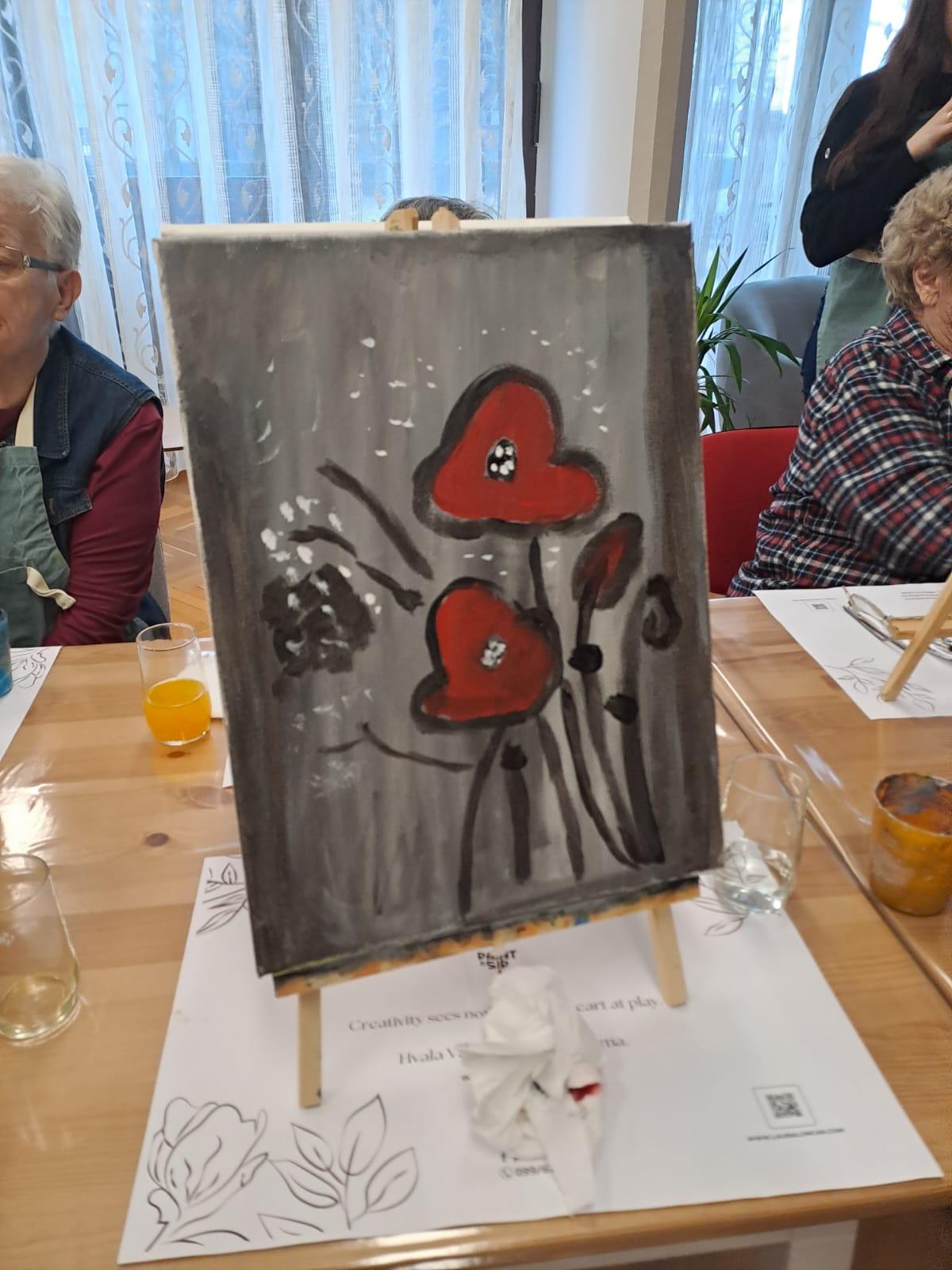 Radionica, organizirana s humanitarnim ciljem, pružila je sudionicama priliku za opuštanje u ugodnom okruženju, uz stvaranje umjetničkih djela. Atmosfera je bila ispunjena toplinom, smijehom i stvaralačkom energijom, dok su radovi koji su nastali tijekom događaja donijeli dodatnu živost i radost prostoru doma.