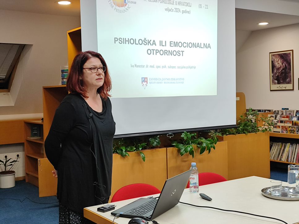 Nakon predavanja o mentalnom zdravlju djece, Iva Manestar, dr. med., spec. psih., subspec. socijalne psihijatrije je zainteresiranoj publici približila temu psihološke ili emocionalne otpornosti u Narodnoj knjižnici „Petar Preradović“ Bjelovar. Neki ljudi, bez obzira na frustracije, razne gubitke i prepreke u životu uspijevaju ostvariti svoje životne ciljeve i dobro se nose sa stresnim situacijama, dok nekima to ne uspijeva.