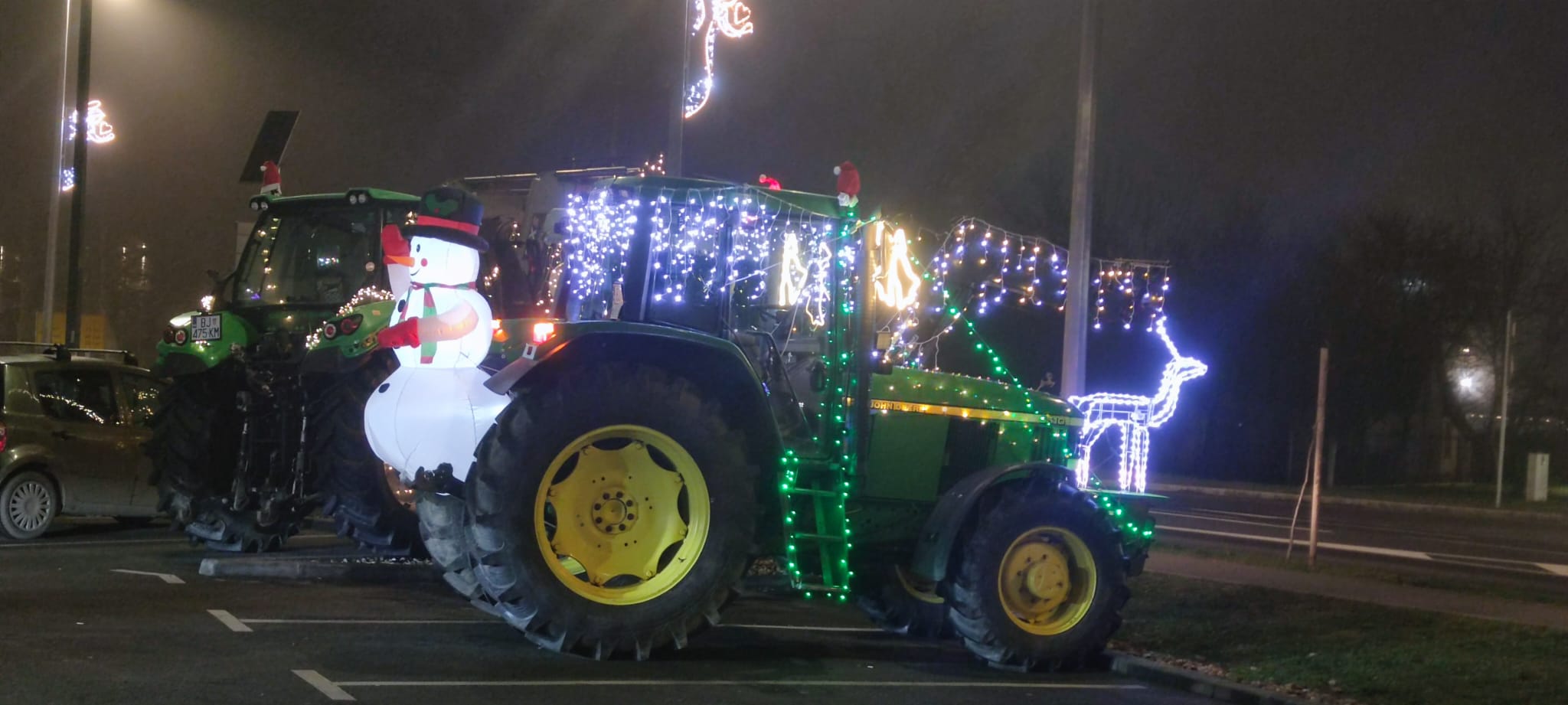 Veliki i mali traktori, raskošno okićeni lampicama, zimskim dekoracijama i božićnim motivima, privukli su veliki broj znatiželjnika. Povorka je prošla kroz grad, a potom se zaustavila na parkiralištu južne obilaznice pored centra Stop&Shop, gdje su posjetitelji mogli izbliza razgledati neuobičajen, ali iznimno simpatičan blagdanski “parkirališni prizor” – redom parkirane, blještavo uređene traktore umjesto automobila.