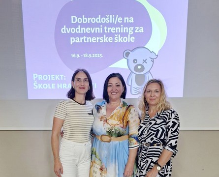 Ravnateljica I. osnovne škole Bjelovar Martina Supančić, psihologinja Mirela Ileković i učiteljica povijesti Jelena Halgaš sudjelovale su 16. i 17. rujna 2025. na dvodnevnom treningu za partnerske škole u okviru EU projekta Škole hrabrosti, koji je održan u Termama Jezerčica.