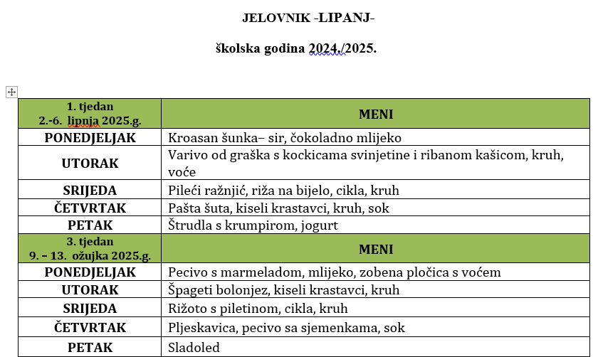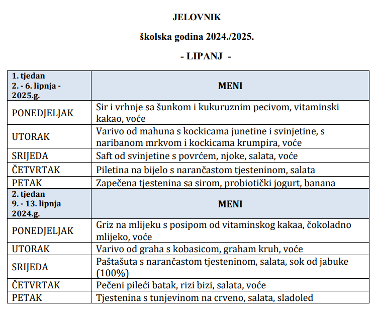 Niže smo izdvojili dva jelovnika škola na području Grada Bjelovara.