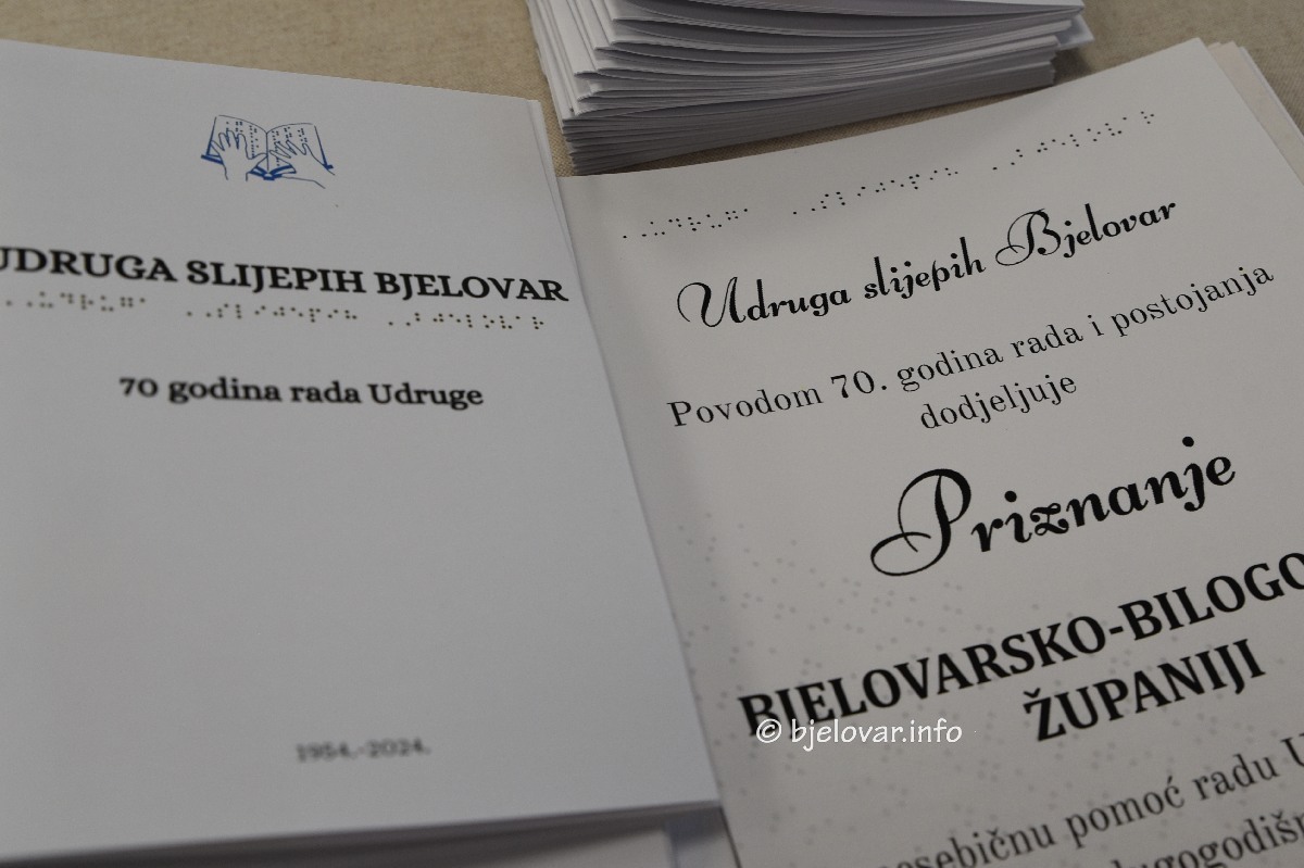 – Velika nam je čast i zadovoljstvo da smo na obilježavanju 70 godina Udruge slijepih u Bjelovaru. Zajedno smo došli do ove 2024. godine kada Udruga slijepih kroz obilježavanje 70 godina svog postojanja može ponosno istaknuti neke stvari koje smo ostvarili u ovoj i prošloj godini, a za koje se zalagalo godinama – rekla je Andreja Veljača.