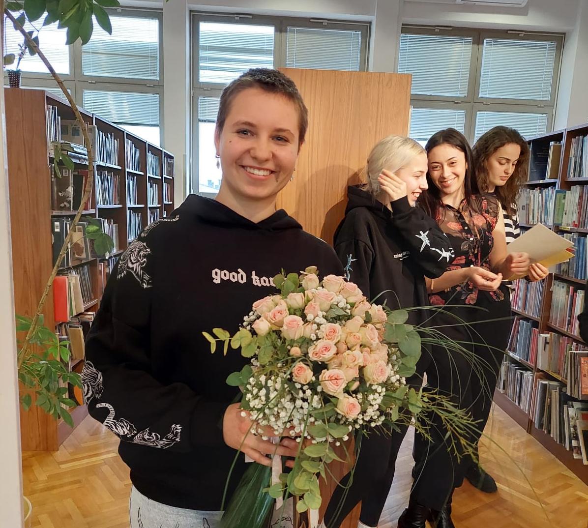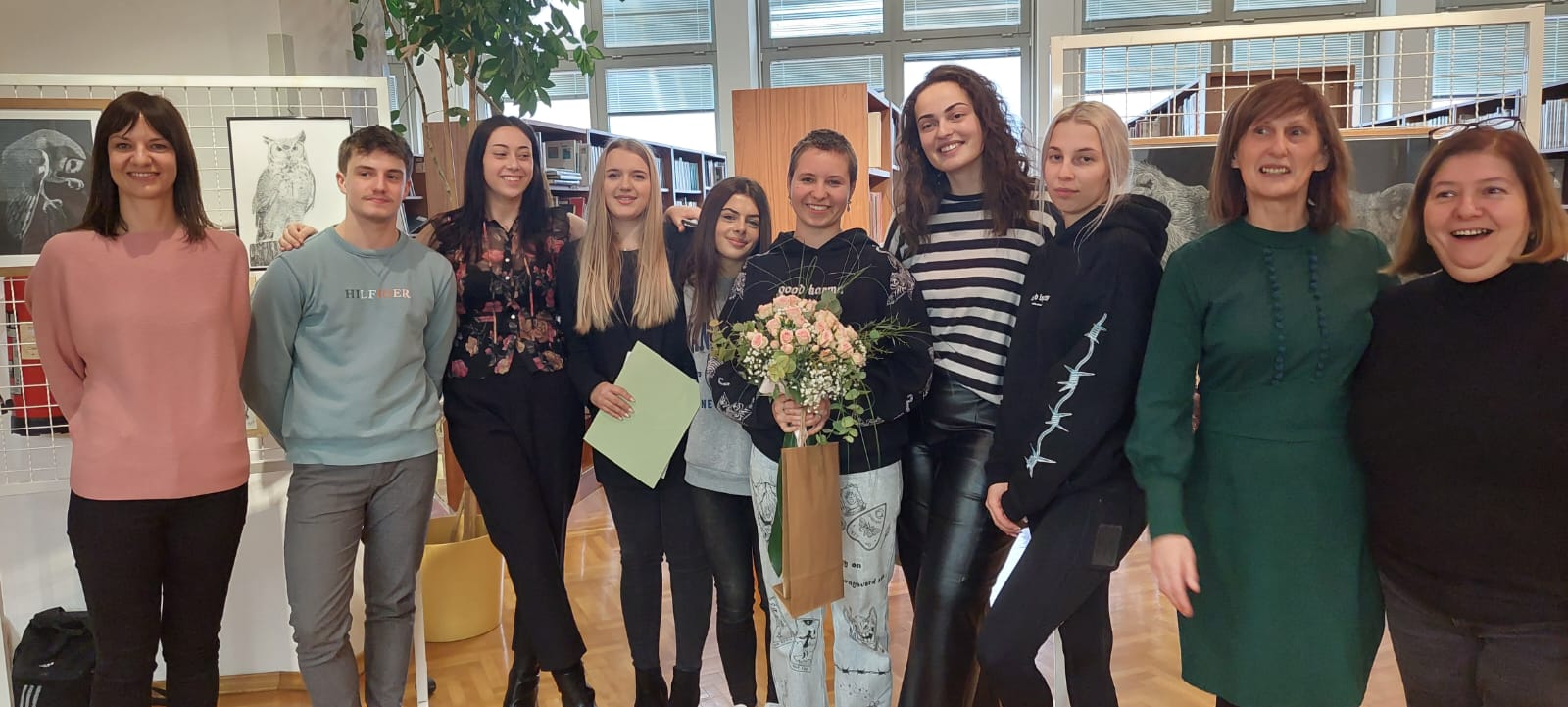 Ove godine predstavili su radove učenice 4. d. razreda, maturantice Maje Deželić. Maja je aktivno sudjelovala na brojnim radionicama u školskoj knjižnici, a njezini pojedinačni radovi bili su izloženi u prostorima škole i knjižnice. Ovo je njezina prva samostalna izložba. U Majinim radovima vidljiv je trud, strpljivost, dugotrajan rad, preciznost i posvećenost. Za to je potrebna iskrena ljubav prema likovnom izričaju. Već na prvi pogled vidljivo je da su životinje glavni motivi njezinih radova. Mnoštvo tigrova, ptica, mačaka i pokoji pas oživjeli su njenim crtežima.
