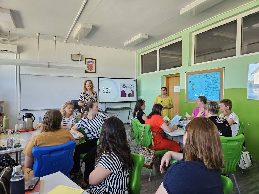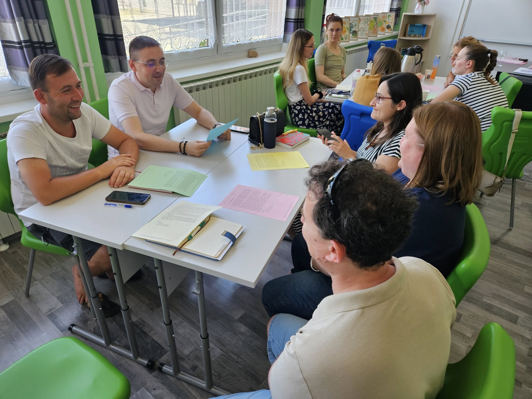 U praktičnom dijelu edukacije održana je radionica u kojoj su učitelji dobili zadatak sagledati određeni problem iz različitih perspektiva – uloga roditelja, nastavnika i učenika. Ovakav pristup potaknuo je razmjenu iskustava i promišljanja, ali i otvoreni razgovor o svakodnevnim izazovima te mogućnostima boljeg razumijevanja i suradnje.