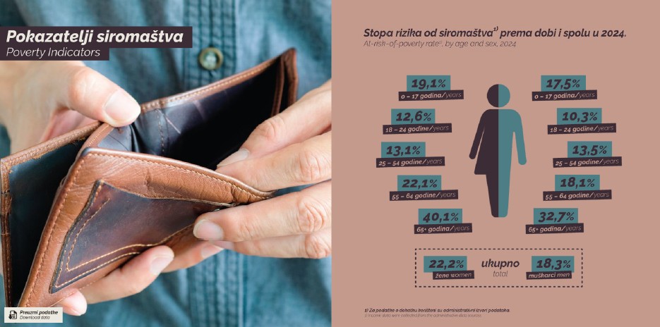 Siromaštvo – riječ koju nerado izgovaramo, no treba biti svjestan da je itekako prisutna oko nas. Državni zavod za statistiku je u Digitalnoj publikaciji „Žene i muškarci u Hrvatskoj 2025.“ iznio statističke podatke o stopi rizika od siromaštva prema dobi i spolu.