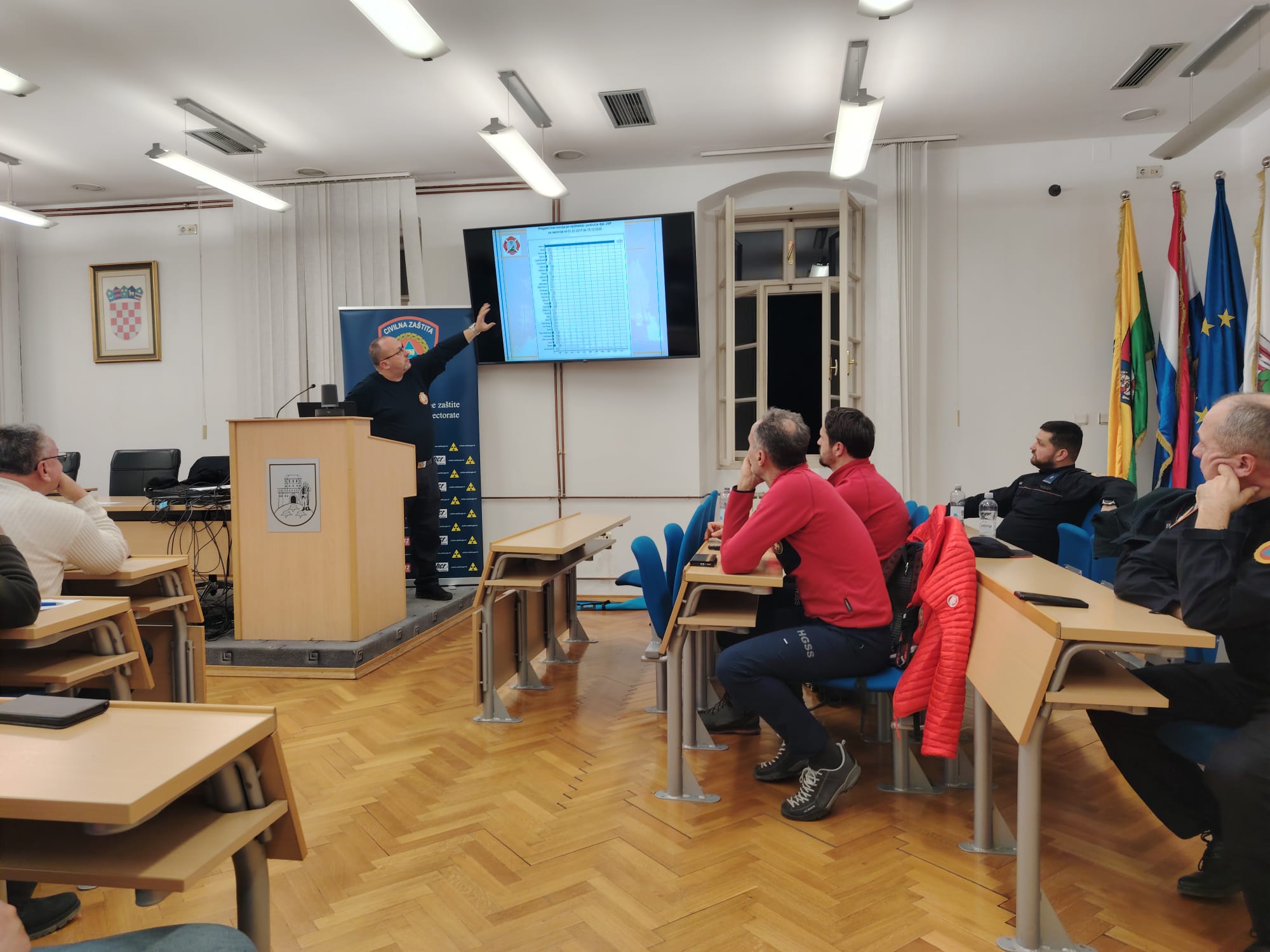 Danko Stavinoha, voditelj Područne službe civilne zaštite Bjelovar, zajedno s voditeljem bjelovarskog Županijskog centra 112 Joakimom Kristićem, nazočne je upoznao s ustrojem sustava civilne zaštite te ih kroz konkretne primjere iz prakse upozorio na važnost pravodobnog i koordiniranog djelovanja u kriznim situacijama.