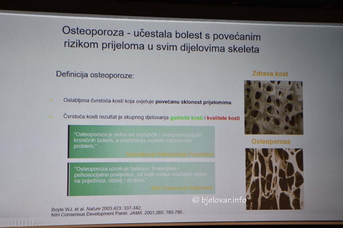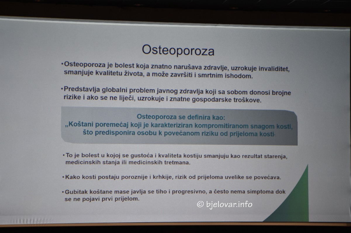 Udio osoba starije dobi u populaciji neprekidno i ubrzano raste. Kada je Bjelovarsko-bilogorska županija u pitanju taj je trend još izraženiji jer je već duže vrijeme ova jedinica regionalne samouprave po starosnoj dobi svojih stanovnika među najstarijim u Hrvatskoj. Njezin svaki peti stanovnik stariji je od 65 godina. U takvim uvjetima znatno je veći pritisak i na zdravstveni sustav pa se pokušavaju pronaći najbrži načini kako postojeće stanovništvo što više educirati kako bi se razna zdravstvena stanja koja iziskuju dugotrajna i skupa liječenja izbjegla. Tako su za nedavne tribine namijenjene građanima, u organizaciji županijske podružnice Hrvatskog liječničkog zbora, priređene upečatljive teme, među njima i ona koja se ticala zdravlja kostiju, osteoporoze i pretilosti. O njoj je govorio doktor Marin Deškin, poznati bjelovarski specijalist interne medicine, subspecijalist endokrinologije i dijabetologije.