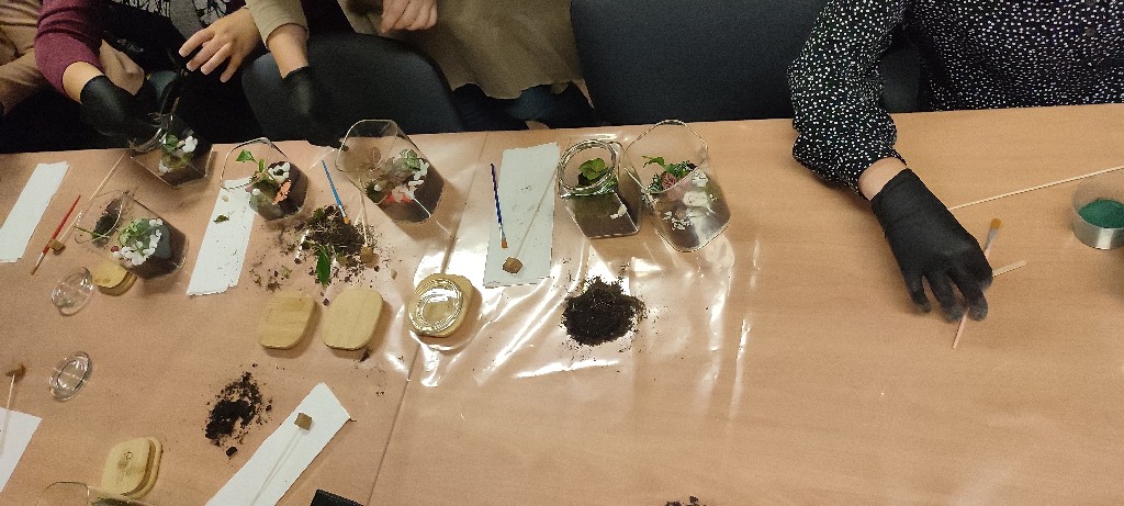 U četvrtak, 13. studenoga 2025., na Studijskom odjelu Narodne knjižnice „Petar Preradović“ održana je kreativna radionica izrade terarija pod vodstvom Andree Petrić. Sudjelovalo je deset polaznika koji su, uz stručno vodstvo, izrađivali vlastite male ekosustave u staklenim posudama.