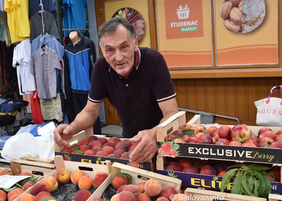 – Već trideset godina prodajem, prodaja je jako loša. Kupuje stanovništvo starije dobi, potrošnja je mala… Prodajem voće – breskve, kruške i trešnje te kukuruz šećerac – žali se Ivan Petrinović.