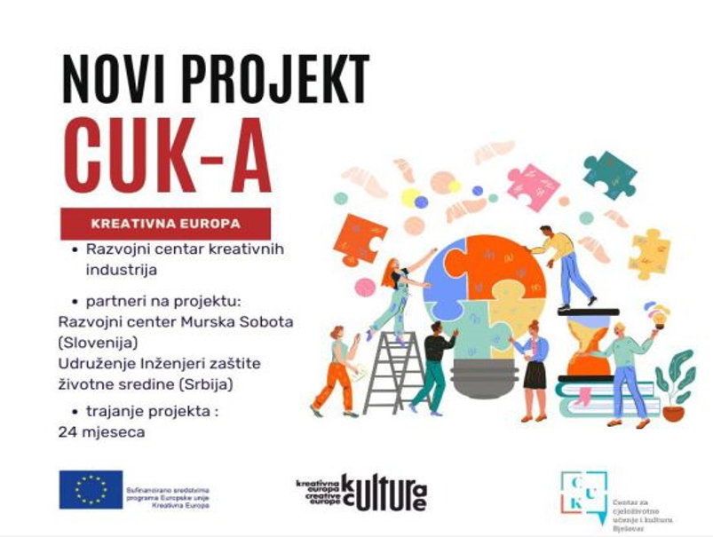Centar za cjeloživotno obrazovanje i kulturu (CUK) sa zadovoljstvom objavljuje da je od strane Kreativne Europe odobren novi i ambiciozni projekt pod nazivom “Razvojni centar kreativnih industrija”. Ovaj projekt je rezultat suradnje s partnerima – Razvojnim centrom Murska Sobota iz Slovenije i Udruženjem inženjera zaštite životne sredine. Kreativna Europa je program EU-a namijenjen potpori europskim kulturnim i kreativnim sektorima. Program ulaže u aktivnosti kojima se jača kulturna raznolikost te odgovara na potrebe i izazove europskih kulturnih i kreativnih sektora.