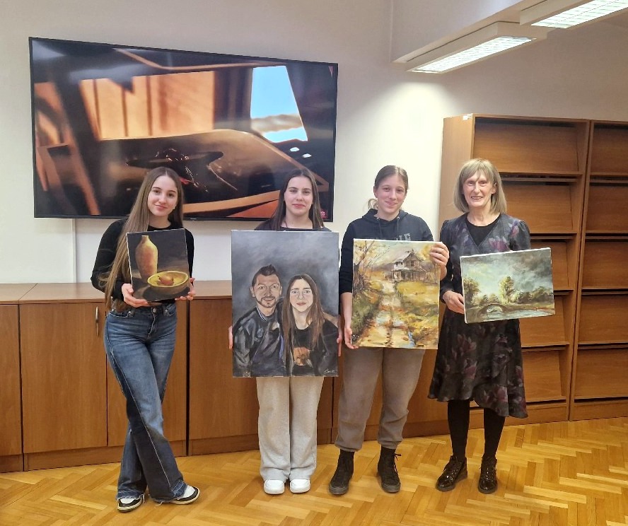 U knjižnici Medicinske škole Bjelovar već se dugi niz godina organiziraju brojne edukativne i umjetničke izložbe, čime je taj prostor prerastao u važno mjesto promicanja kreativnosti nastavnika i učenika. Svaka generacija skriva barem jedan umjetnički talent – slikara, glazbenika, pisca ili pjesnika – a među njima je i Marija Juković, učenica 2. d razreda, koja se predstavila samostalnom izložbom likovnih radova pod nazivom Carstvo sunca.