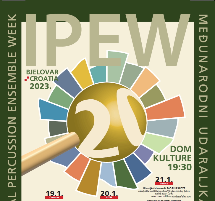 Točno nas tjedan dana dijeli od službenog otvorenja jubilarnog, 20. Međunarodnog udaraljkaškog tjedna, IPEW-a. Festival se u Bjelovaru kontinuirano održava već 19 godina na samom početku kalendarske godine, u mjesecu siječnju (uz iznimke u prošle dvije pandemijske godine), a Ministarstvo kulture i Grad Bjelovar podupiru ga od samih početaka. Festival osim koncertne pruža i edukacijsku notu – majstorski tečajevi, predavanja, promovira soliste i ansamble, nacionalne programe kao i tematske večeri te potiče suradnju na samome festivalu organizirajući zajedničke nastupe izvođača.