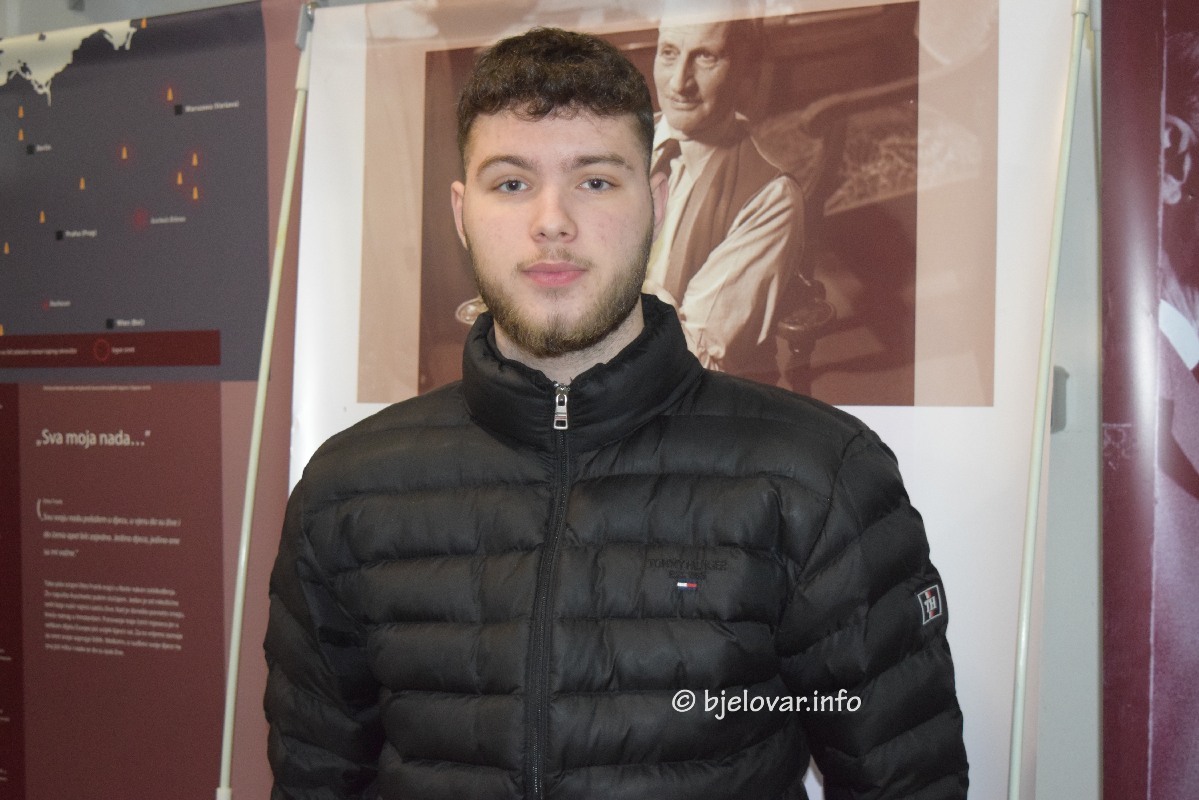 – Drago mi je što se naša škola ovime bavi jer je to jedna tema o kojoj bi se trebalo puno pričati. Moje kolege i ja smo se puno trudili da na što bolji način prezentiramo život Anne Frank. Svjesni smo da većina ljudi zna o njoj puno i o temi koja se veže uz njezin život, ali je lijepo da naši vršnjaci i svi ostali koji žele, čuju od nas možda i neke detalje koje do sada nisu znali. Iznenađena sam što većina ovih panela koje predstavljamo u sklopu izložbe se tiče upravo Anne Frank, ali još više me zaintrigiralo to što je i nekoliko njih vezano uz našu povijest, uz NDH i žrtve Jasenovca. Drago mi je što je profesorica i mene izabrala za prezentaciju – rekla nam je Sara Rastović.
