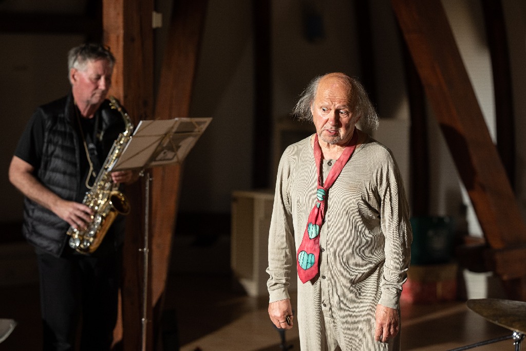 Predstava punog naziva Medvjed – komedija kao šala, a šala za džez trio i jednog glumca u deset slika, nastala prema djelu Antona Pavloviča Čehova, predstavlja izniman spoj kazališta i glazbe. U ovoj izvedbi glumac ostvaruje interakciju s glazbenim instrumentima koji simbolično preuzimaju uloge likova, dok sam glumac funkcionira kao dodatni instrument – ritmički, emotivno i scenski.