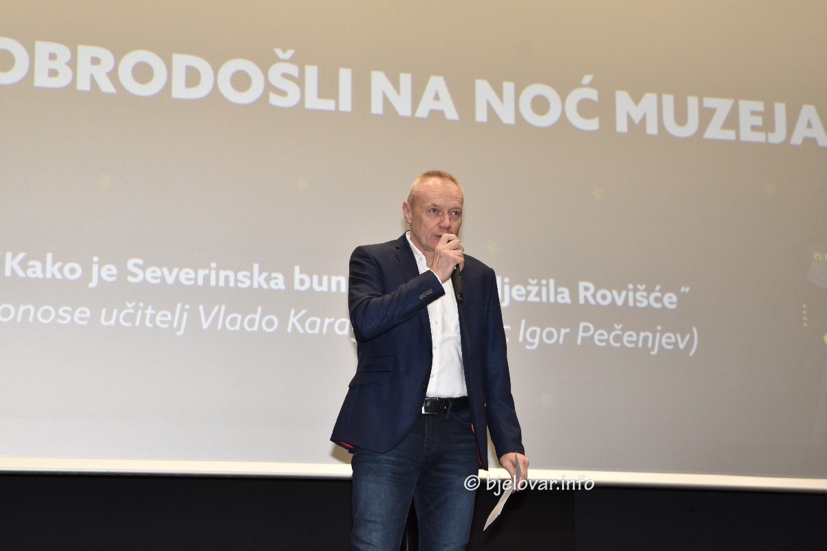 – Drago mi je da je ova dvorana ovako popunjena, hvala vam svima što ste došli. Što reći o Noći muzeja koju održavamo već nekoliko godina ovdje u Rovišću. Održava se u cijeloj Hrvatskoj, a mi svake godine želimo biti sve bolji i bolji. Dobro došli svi zajedno i veselim se što ćemo danas nešto novo naučiti i što ćemo se vratiti u povijest. Svakako ovakvi događaji obogaćuju naš kraj, a mi imamo veliko bogatstvo na području naše općine. Prvi pisani tragovi su krenuli još 1232. godine, a to znači da se i prije toga ovdje živjelo. Imamo svoju povijest samo je ona još uvijek neistražena. Imamo mi u svojim škrinjicama još puno toga za izvaditi, puno toga za otvoriti kako bi saznali što se događalo u našoj povijesti. Hvala vama što ćete danas-sutra prenositi ovo svojoj djeci, a naša djeca nekom drugom – rekao je načelnik.