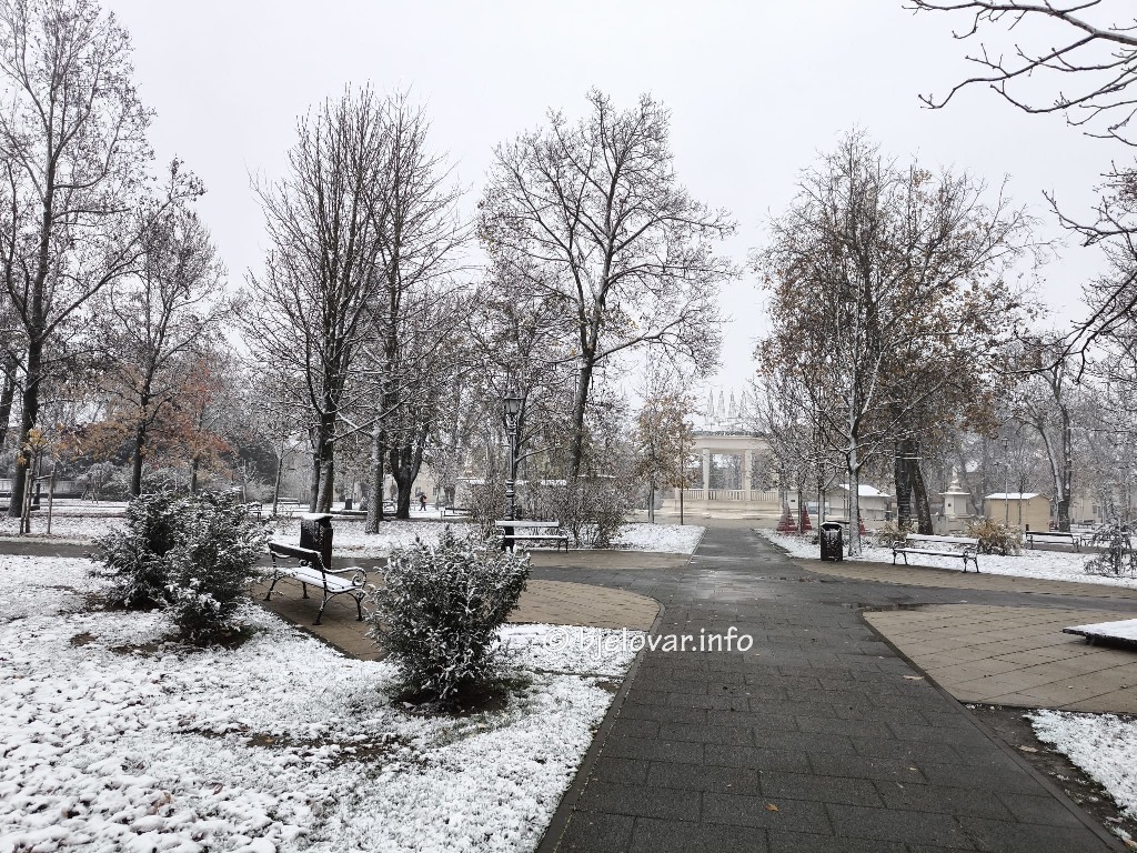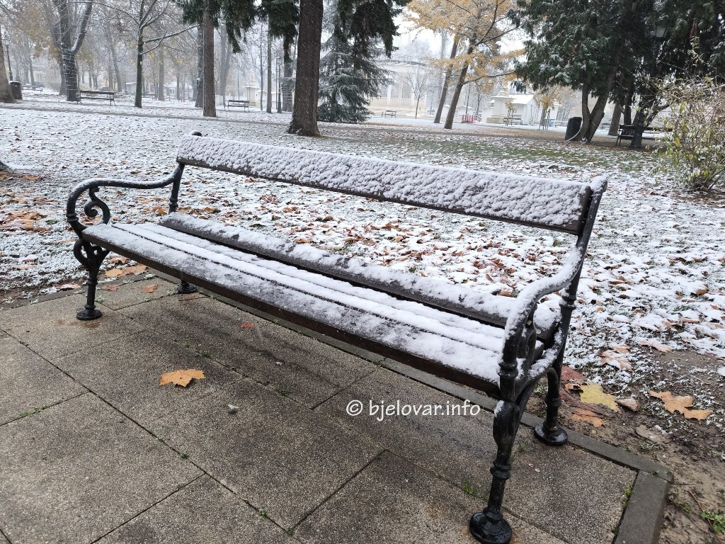 Nježni, mekani snježni pokrivač spustio se na glazbeni paviljon, park i gradske krovove, pretvarajući naše ulice u pravu zimsku bajku. Zabijeljene klupe, tihe staze i pahulje koje još uvijek plešu zrakom stvaraju onaj poseban osjećaj topline i mira koji samo prvi snijeg donosi.