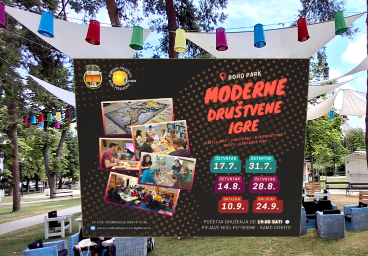 Bjelovarsko kulturno ljeto 2025. dobiva još jednu zanimljivu dimenziju – Narodna knjižnica “Petar Preradović” poziva sve željne zabave i druženja da dođu u Boho park i okušaju se u svijetu modernih društvenih igara! 🎲