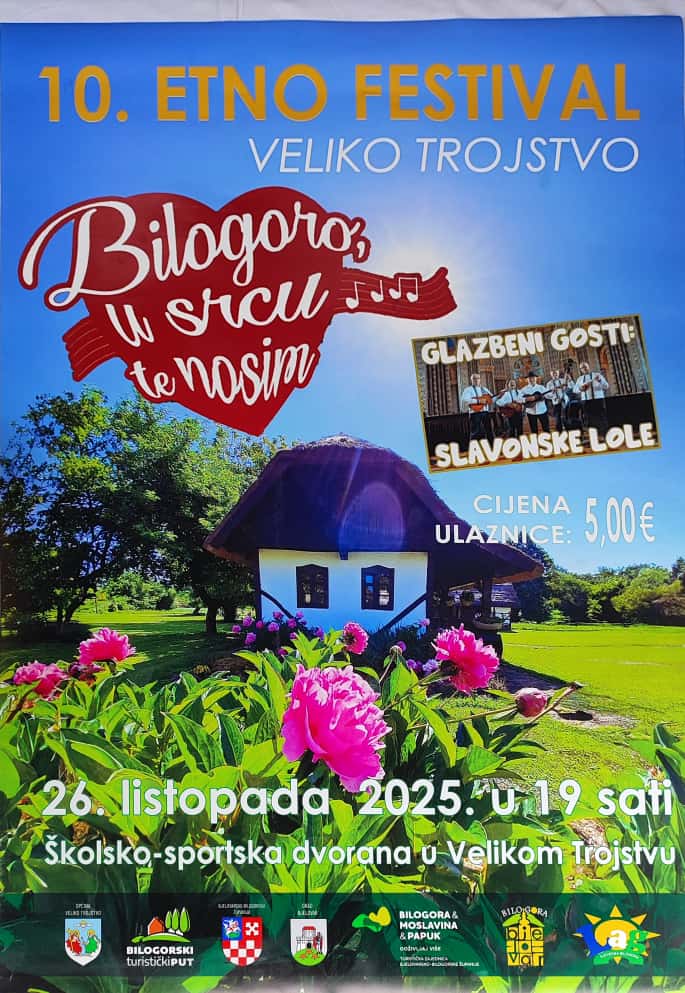 Pred nama je 10. jubilarni etno festival „Bilogoro u srcu te nosim“ koji će se održati u nedjelju, 26. listopada, u školsko-sportskoj dvorani u Velikom Trojstvu s početkom u 19 sati. Festival je to koji već jedno desetljeće potiče tekstopisce, skladatelje, aranžere i izvođače na stvaranje i izvođenje novih skladbi nadahnutih ljepotama i tradicijom Bilogore.