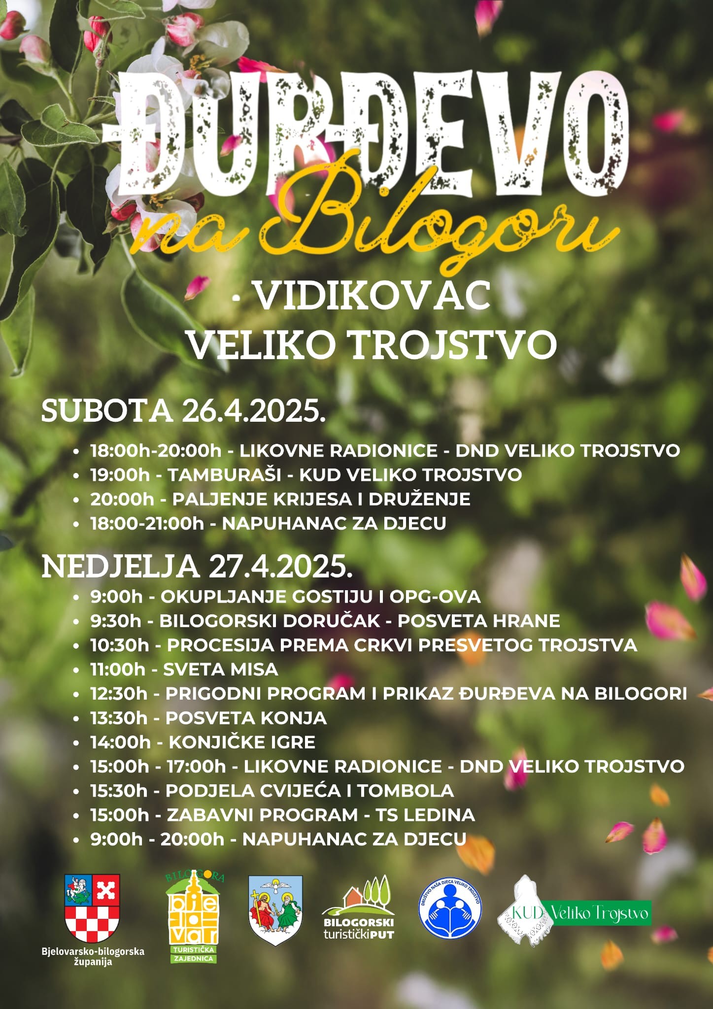 Tako će biti i ove godine, 26. i 27. travnja na Vidikovcu u Velikom Trojstvu, gdje nas očekuje bogat dvodnevni program. Manifestacija će još jednom pokazati svu raskoš Bilogore – od domaćih proizvoda i rukotvorina, likovnih radionica u zelenom okruženju, tradicionalnog blagoslova konja, do raznolikog glazbenog programa za sve generacije.