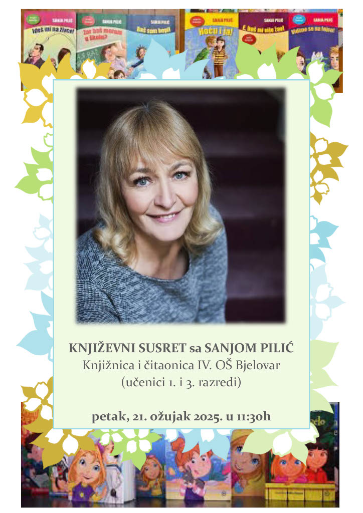 IV. osnovna škola Bjelovar organizira književni susret s popularnom autoricom Sanjom Pilić, koji će se održati u petak, 21. ožujka. Ovaj događaj bit će prava prilika za učenike, osobito prve i treće razrede, da uživaju u razgovoru s jednom od najvoljenijih hrvatskih književnica.