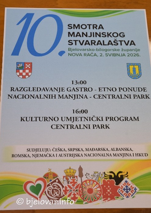 – Svake godine smotra se održava u drugoj sredini, a ovog puta domaćin je albanska nacionalna manjina. Zahvalni smo kolegi Jozefu Gojaniju koji je prihvatio organizaciju i predložio da se manifestacija održi upravo u Novoj Rači. Posjetitelje očekuje bogat program u kojem sudjeluju češka, srpska, mađarska, albanska, njemačka i romska nacionalna manjina, kao i Kulturno-umjetničko društvo „Ivan Vitez Trnski“. Vjerujem da ćemo zajedno proslaviti kulturno bogatstvo naše županije – istaknuo je Malina.