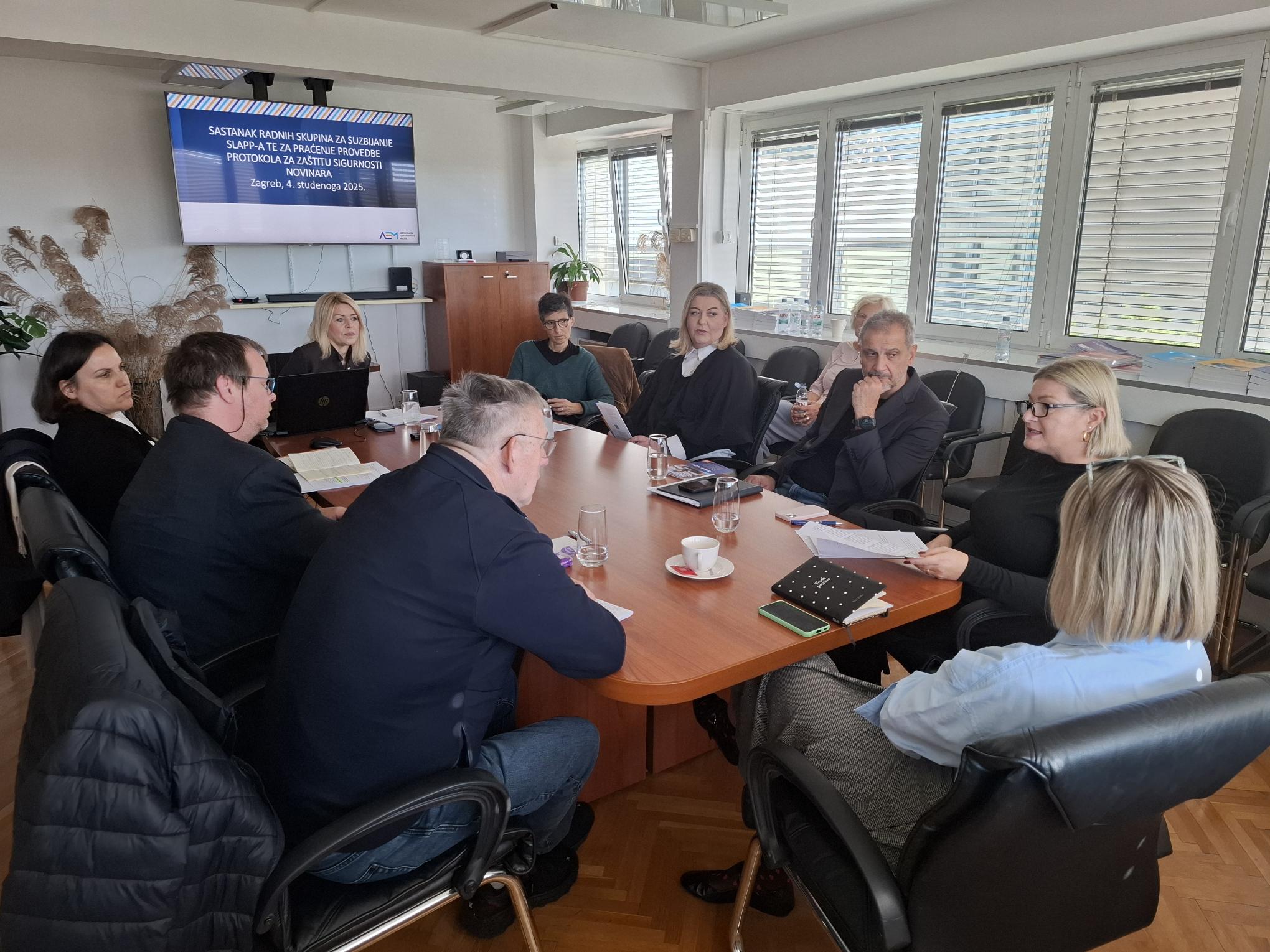U prostorijama Agencije za elektroničke medije održan je sastanak radnih skupina za suzbijanje strateških tužbi protiv javnog djelovanja (SLAPP) te za praćenje provedbe protokola za zaštitu sigurnosti novinara i drugih medijskih djelatnika.