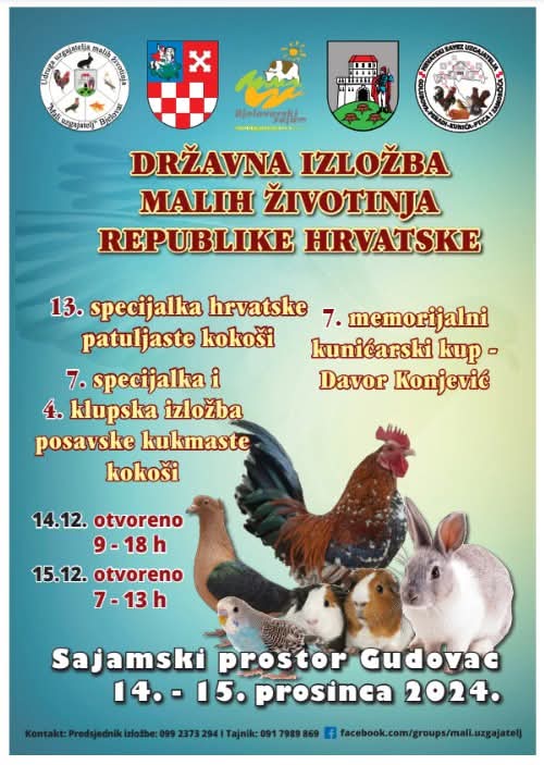 Državna izložba malih životinja Republike Hrvatske održat će se na sajamskom prostoru u Gudovcu 14. i 15. prosinca 2024. godine.
