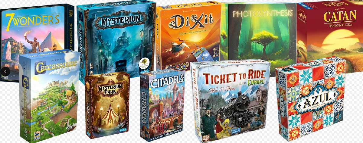 U druženju ćete imati priliku zaigrati igre poput 7 Wonders, Azul, Catan, Carcassonne, Citadels, Dixit, Mysterium, Photosynthesis, Ticket to Ride i mnoge druge.