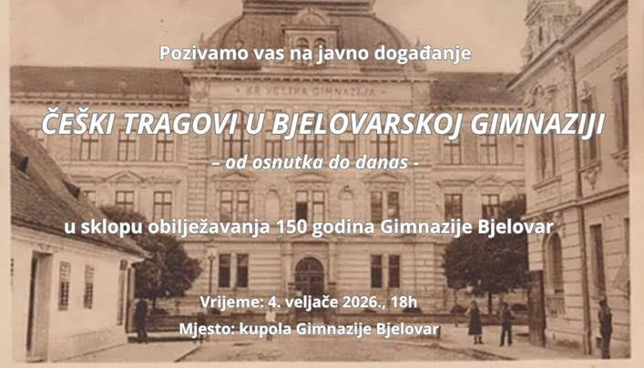 U sklopu obilježavanja 150. obljetnice Gimnazije Bjelovar, u srijedu, 4. veljače 2026. godine, u 18 sati, u kupoli Gimnazije Bjelovar održat će se program pod nazivom „Češki tragovi u bjelovarskoj gimnaziji – od osnutka do danas“.