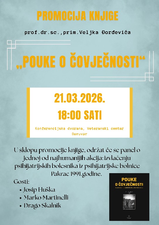 Nakon predavanja, u 18 sati, uslijedit će promocija knjige „Pouke o čovječnosti“ autora Veljka Đorđevića.