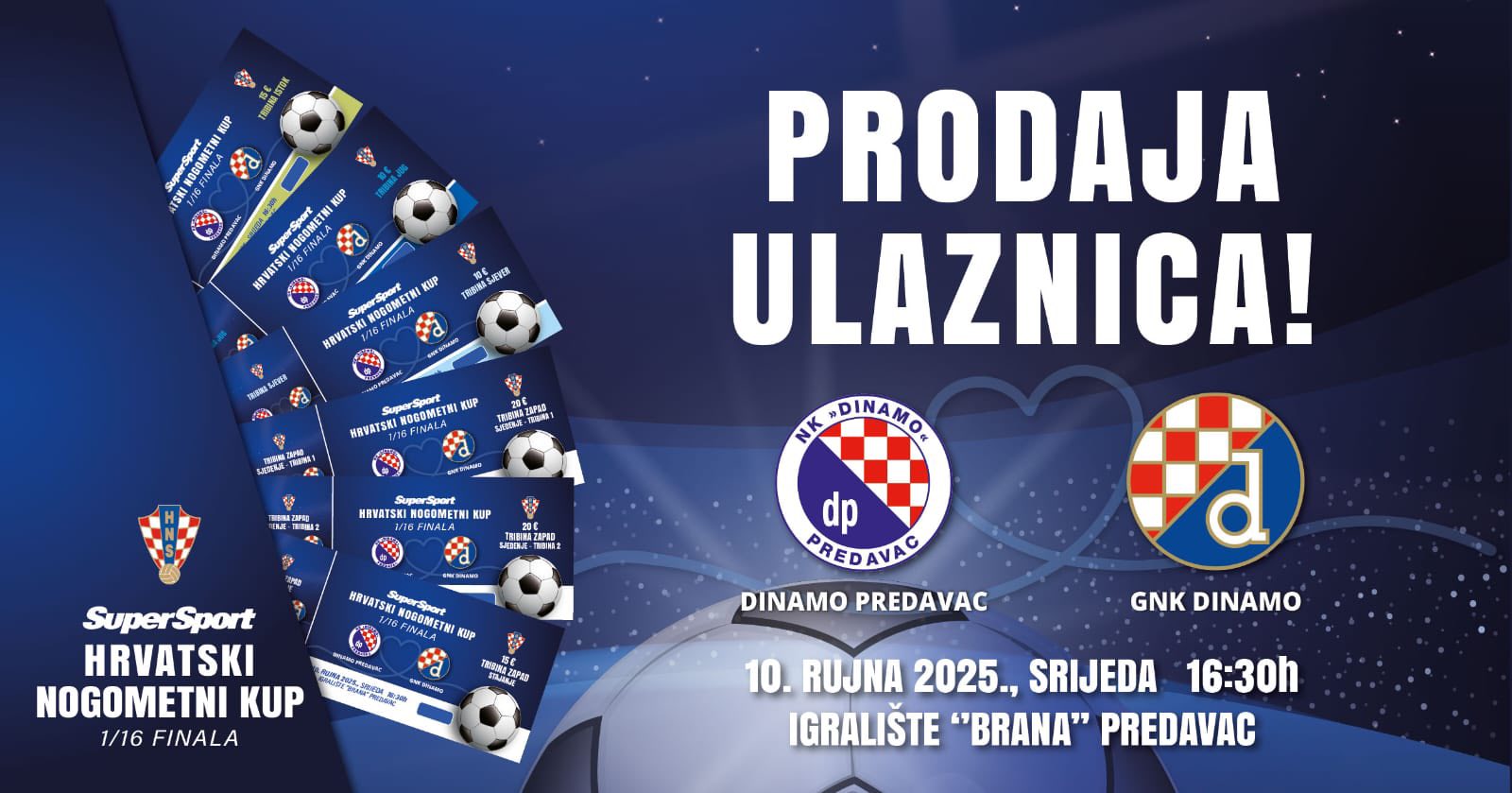 Nogometni klub Dinamo Predavac najavljuje veliki sportski događaj koji će se održati u srijedu, 10. rujna 2025. godine, s početkom u 16:30 sati na igralištu Brana u Predavcu (Ulica 29. rujan 1) kada će Dinamo Predavac zaigrati protiv GNK Dinamo!