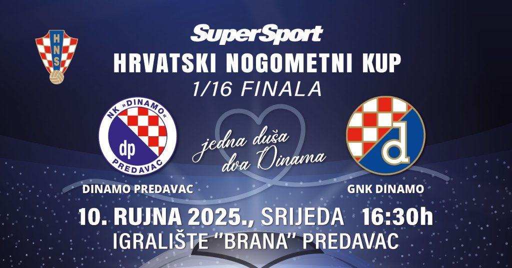 U srijedu, 10. rujna 2025., s početkom u 16:30 sati, na igralištu Brana u Predavcu čeka nas nogometna poslastica – povijesna utakmica 1/16 finala SuperSport Hrvatskog kupa između NK Dinamo Predavac i GNK Dinamo Zagreb! Očekuje nas susret lokalnog ponosa i velikana hrvatskog nogometa, prilika koja se ne propušta i koja će zasigurno ostati urezana u sjećanje svih zaljubljenika u nogomet.