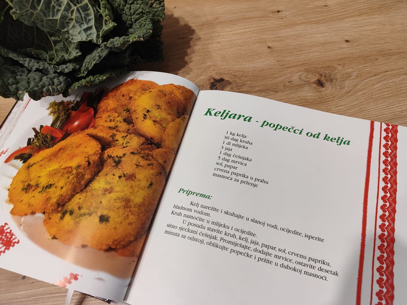 U moru recepata često posegnemo za onim domaćim, bakinim receptima iz knjige „Bakina kuharica – tradicijska jela Bjelovarsko-bilogorske županije“. U vrtu smo ubrali jedan mladi, prekrasni kelj te s njim odlučili napraviti keljaru – popečke od kelja!