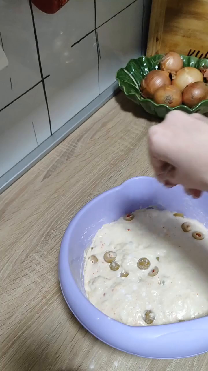 - Potom dodajte masline (cijele ili narezane) pa sjedinite s tijestom.
