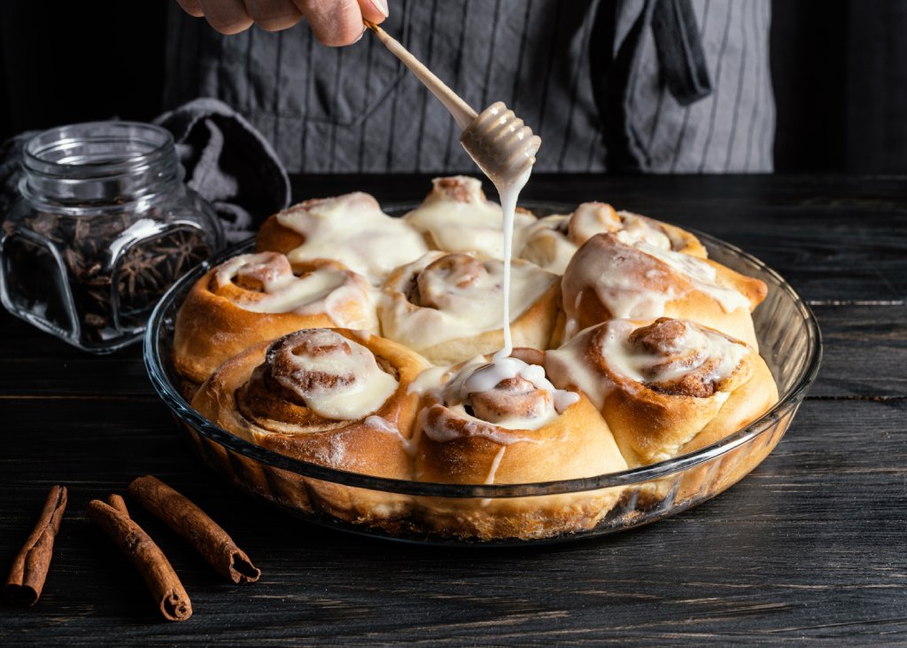 - Prelijte toplu glazuru po vrućim cimet rolicama i poslužite ih tople ili hladne.