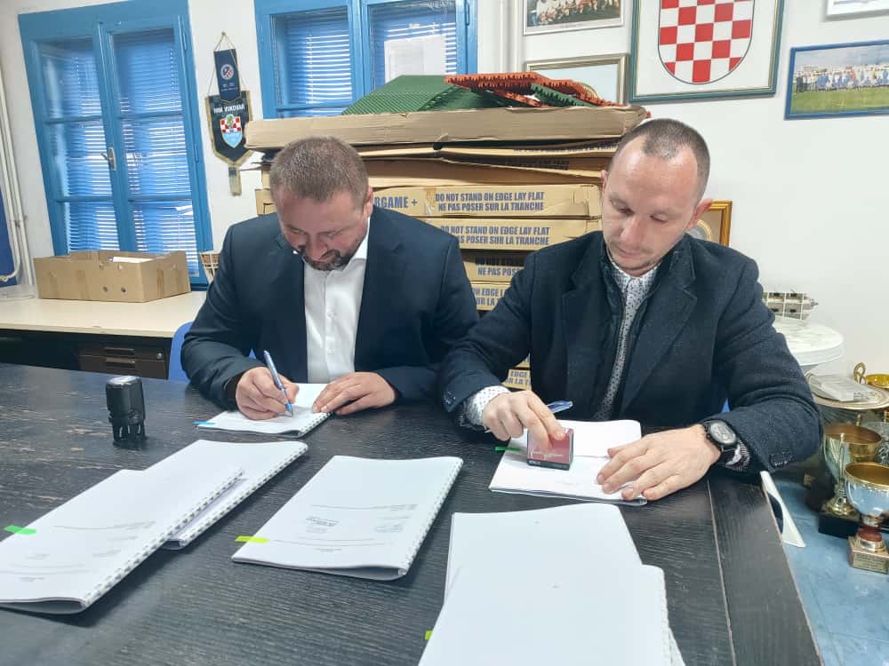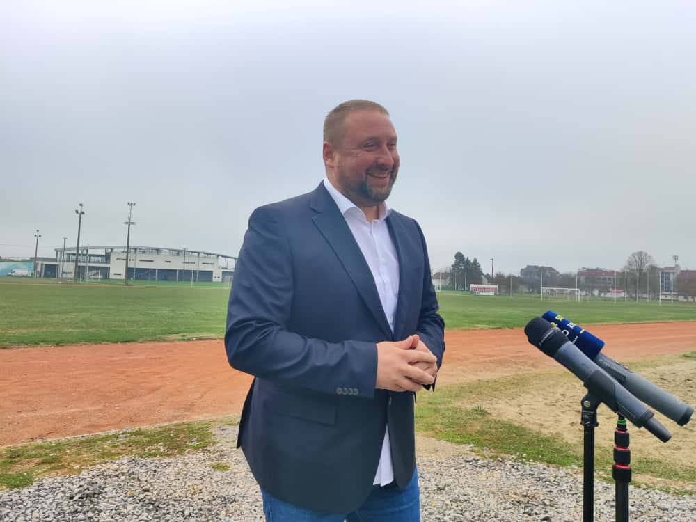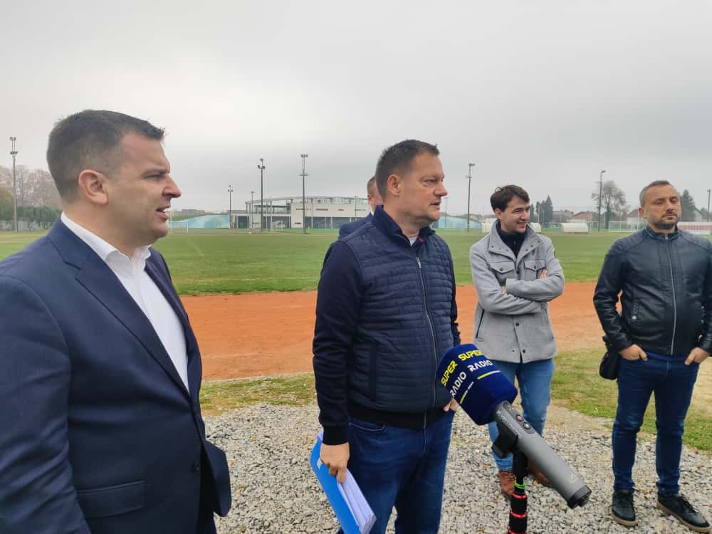 – Bliži se povijesni dan. Danas potpisujemo ugovore za izgradnju atletskog stadiona. U prvoj fazi se radi sanacija igrališta. Moramo ga izravnati jer ono visi metar i pol. Ovdje nema nijedne drenažne cijevi jer teren prirodno visi pa se sva voda prirodno odlije – pojašnjava gradonačelnik Dario Hrebak.